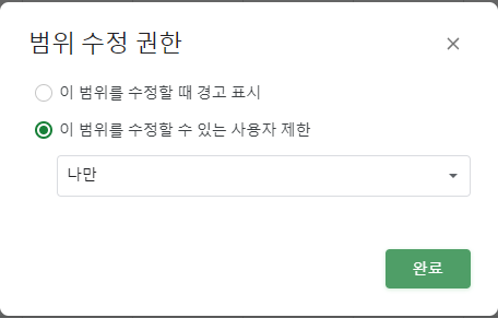 위와 같이 보호셀을 적용하면 공동작업자가 자신이 만든 작업물 내용물 수정하지 못하도록 막을 수 있습니다.